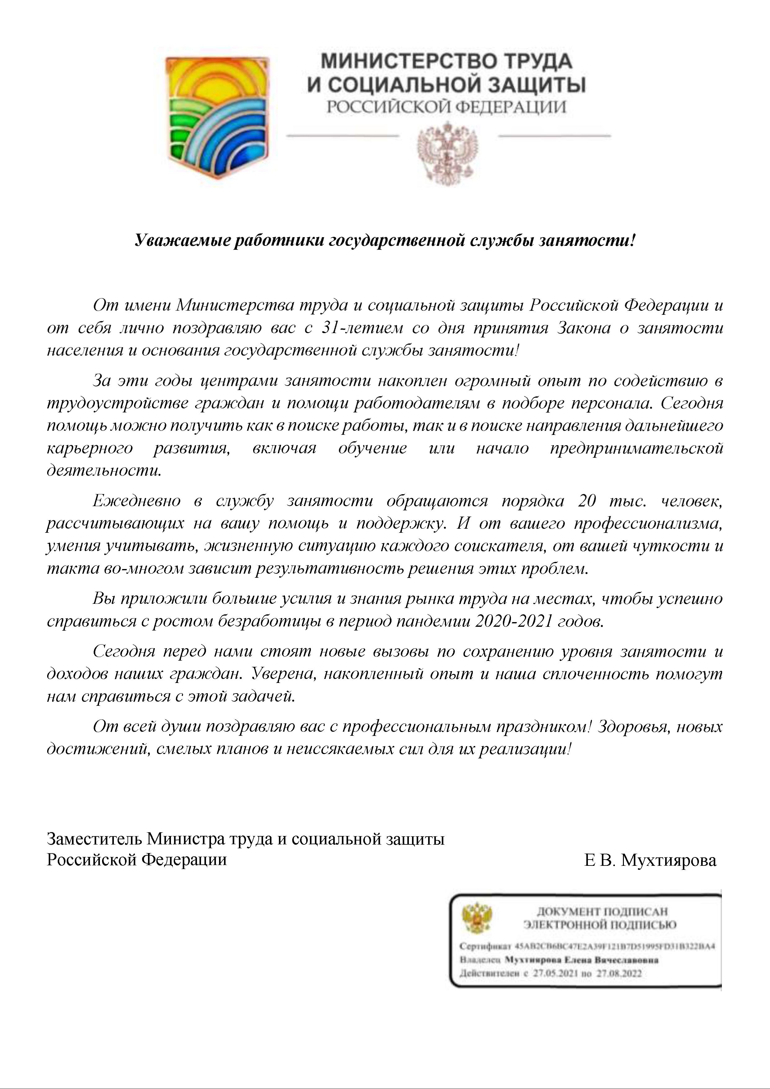 Сегодня исполняется 28 лет со дня принятия Закона РФ «О занятости населения в Российской Федерации».